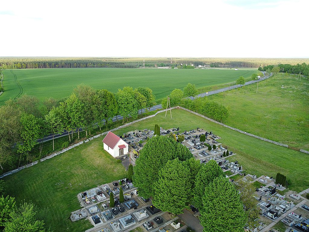 Położony we wschodniej części wsi pomiędzy szosą z Piły do Wałcza i drogą wiejską przy kościele.
